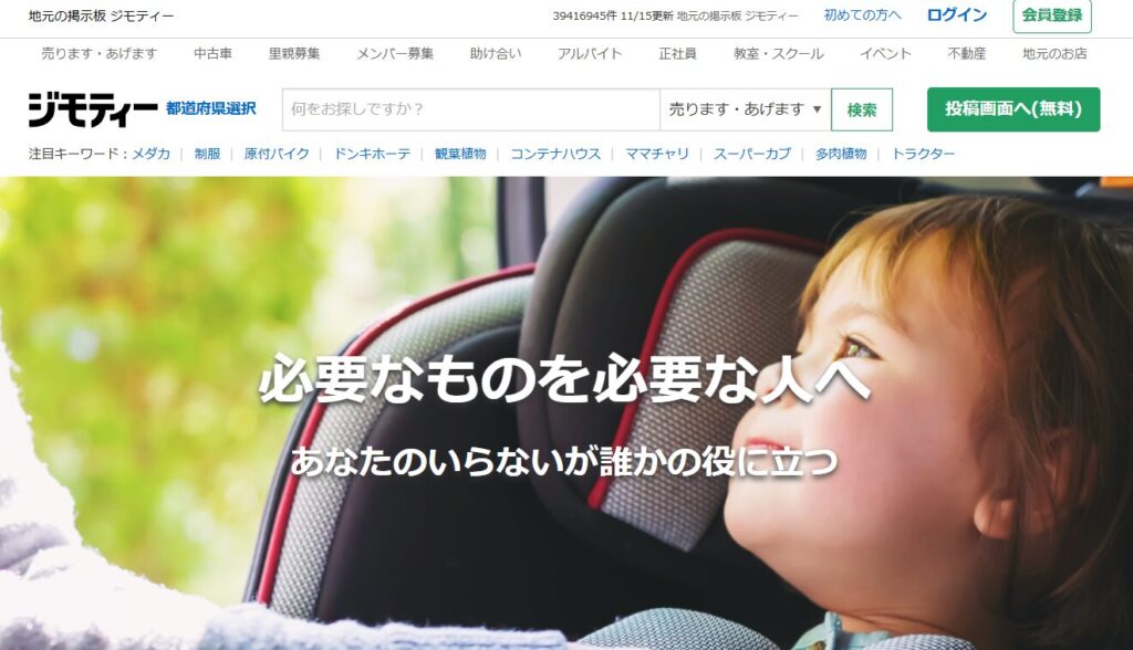 私もジモティーは、必要な家具・家電を揃えたり、反対に引っ越し時に無料で出品するときによく使っています。