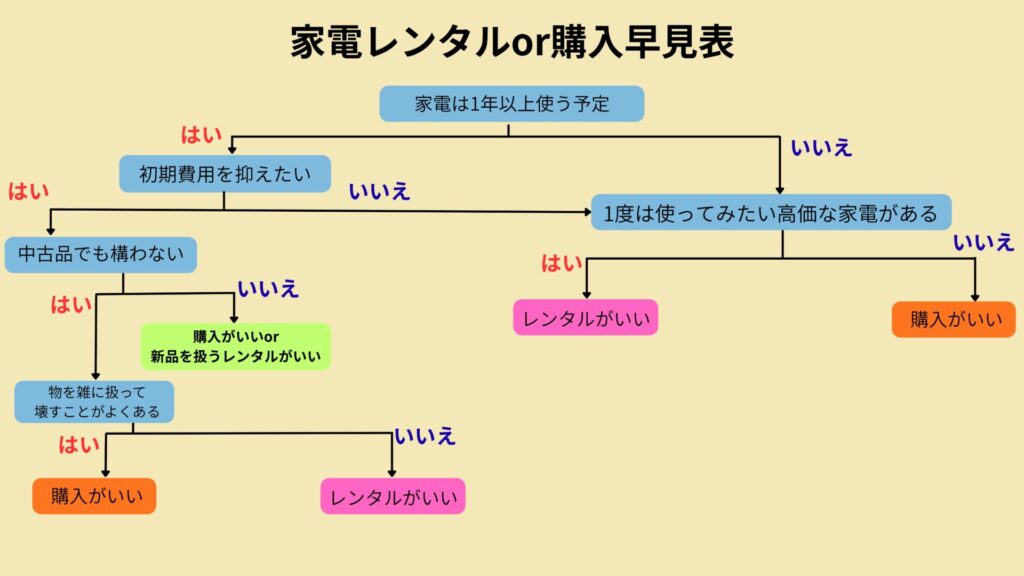 家電をレンタルする場合、どれくらいの期間借りたいのかを決めた上で、購入するのとどちらが安いのか把握しておく必要がありますね。