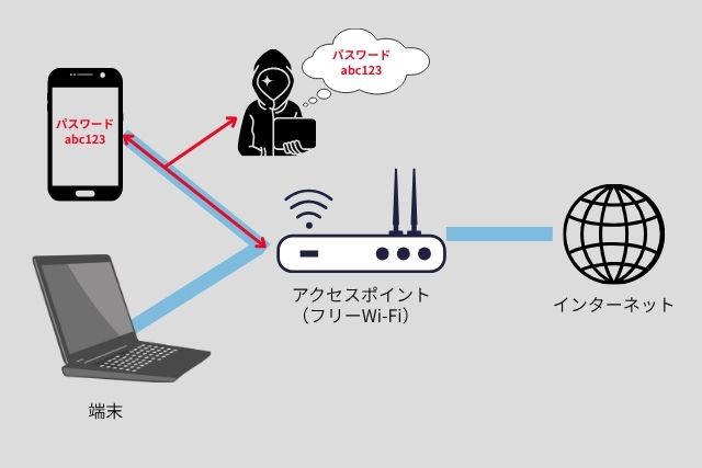 フリーWi-Fiには、主に次の3つの危険性があります。それぞれ、図と共に解説していきます。