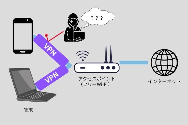 VPNにつなぎ、スマホやパソコンのセキュリティを高める方法もあります。VPNとは、簡単にいうとインターネットを使う時に通る道に暗号化したトンネルを作ることで、セキュリティを高める仕組みのことです。