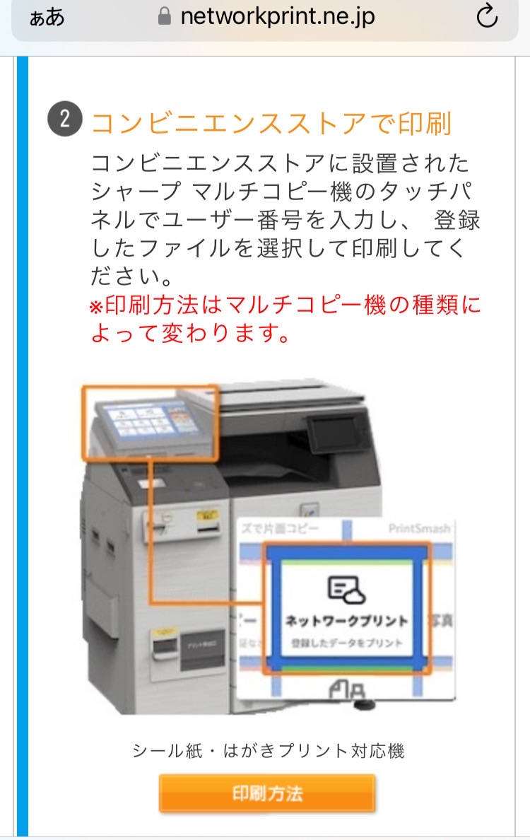 最寄りのセブンイレブンに行き、プリント手順を元に印刷を行います。
