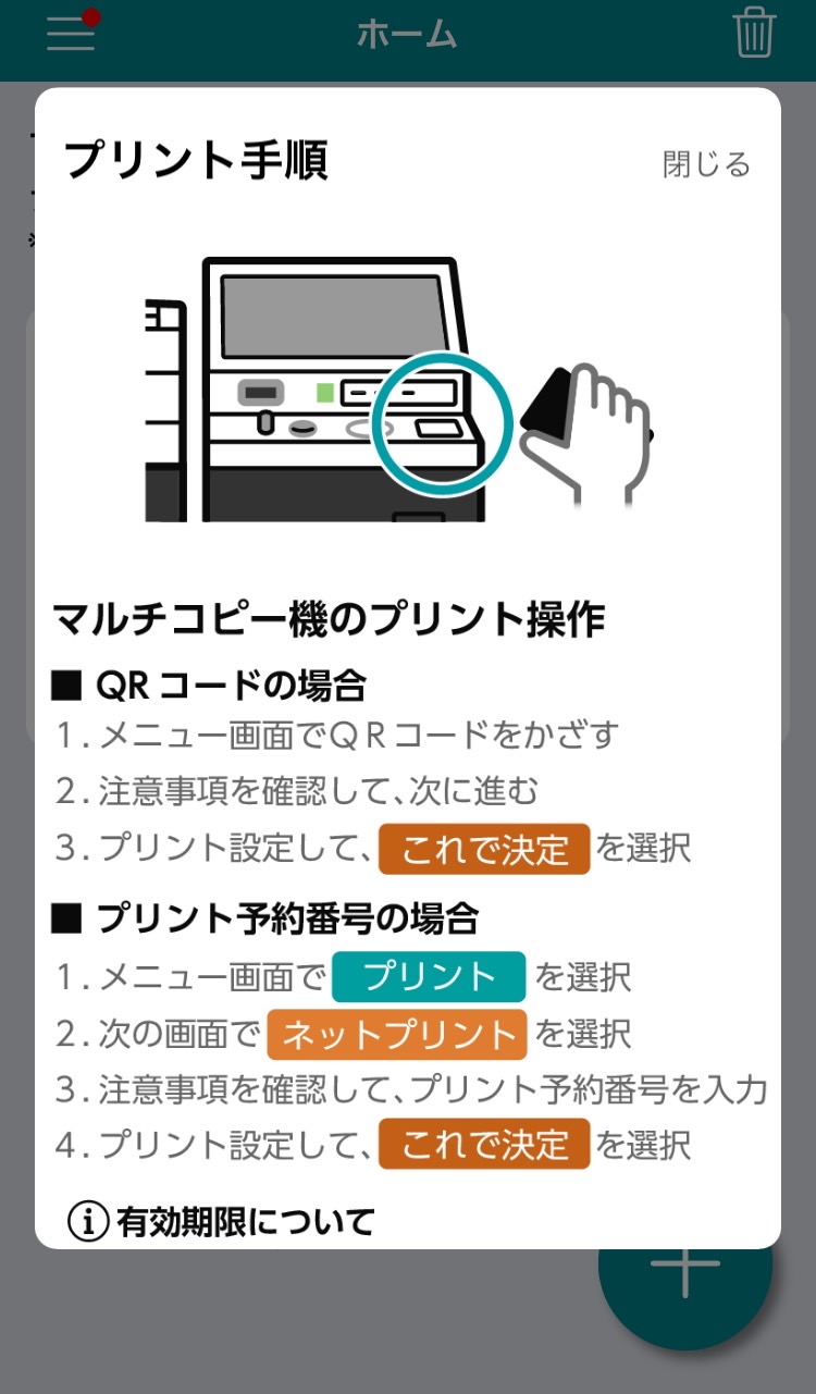 スマートフォンからMicrosoft OfficeやPDFファイル、写真やWEBページをネットプリントセンターへ登録し、プリント予約番号またはQRコードでプリントできるアプリ。印刷有効期限はプリント予約日+7日です。